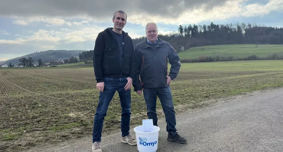 Raphael Müller ist überzeugter Nutzer und ein schönes Beispiel dafür, dass Klima- und Umweltschutz auch mit konventioneller Landwirtschaft, die auf hocheffiziente Produktion angewiesen ist, vereinbar sind. Dank des Förderprogramms Reduktion Lachgasemissionen aus Stickstoffdüngung von First Climate, das die Stiftung KliK finanziert, können Anbieter wie zum Beispiel die Firma Omya den optimierten Dünger zu einem sehr marktfähigen Preis verkaufen, und so profitieren am Ende alle Beteiligten im Kreislauf der Nahrungsproduktion.